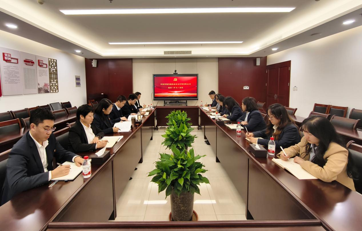 为深入学习贯彻党的二十届四中全会精神,2025年10月29日,河南省现代服务业基金管理有限公司组织召开党员(扩大)会议,集中学习《中共中央关于制定国民经济和社会发展第十五个五年规划的建议》,公司全体党员及员工参加会议。